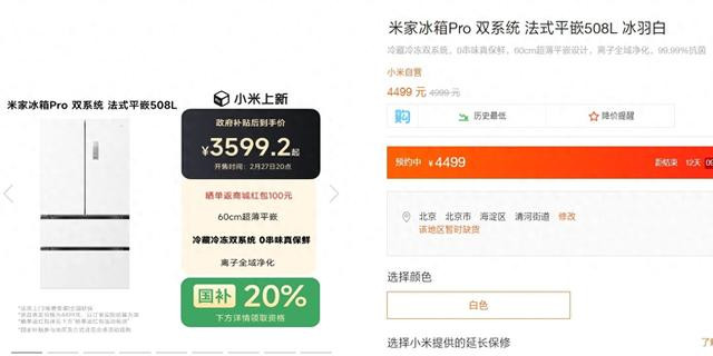 也就是说,米家冰箱Pro这款新品首发就可以享受国补,4499元的价格开卖就变成3599元,开卖之前先自刀900元。